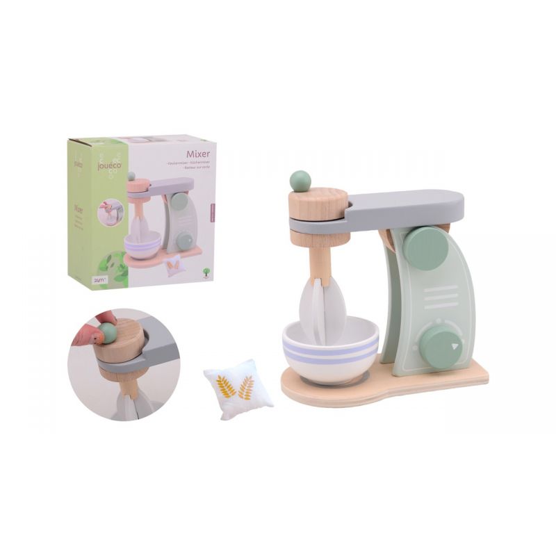 Vispa, blanda och baka loss! Denna leksaksmixer i trä är ett måste i varje litet leksakskök och bjuder in till fantasifull baklek där barnet får härma vardagens köksstunder.