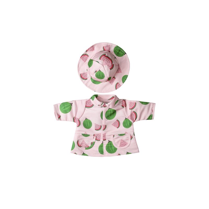 Klädset Klädset i glada, lekfulla färger och passar dockor i storlek 41-46 cm. Setet innehåller en regnjacka och tillhörande regnhatt.