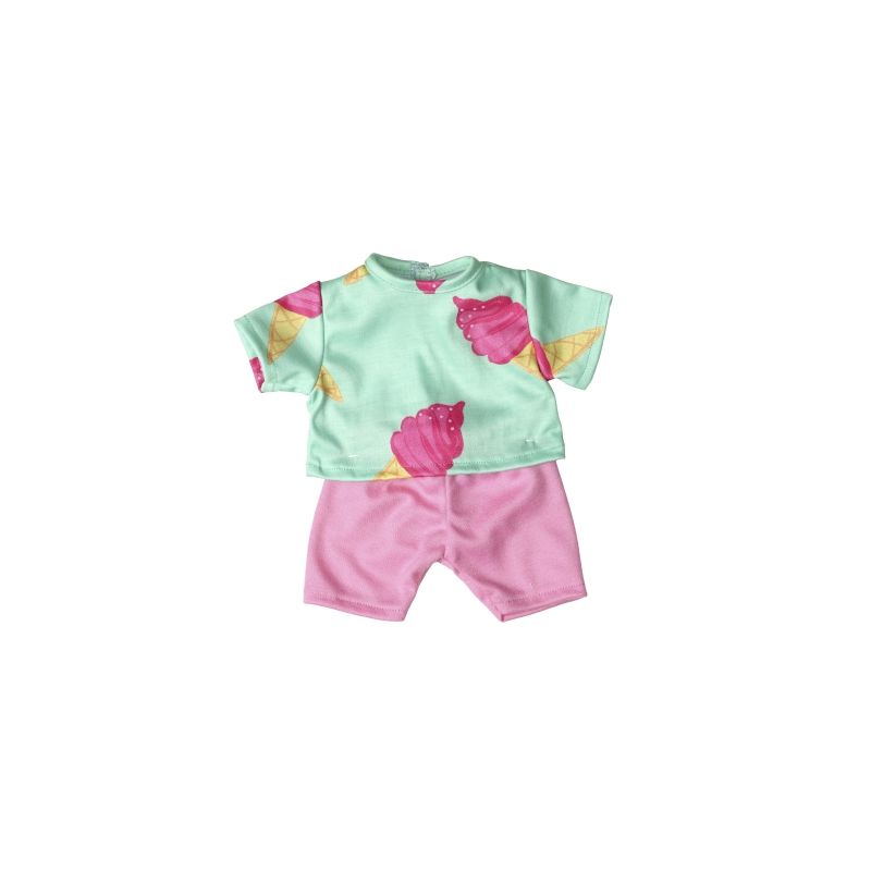 Klädset i glada, lekfulla färger och passar dockor i storlek 36-40 cm. Setet innehåller shorts och t-shirt. Dockkläderna är lätta att ta av och på för ombyten och nya äventyr.
