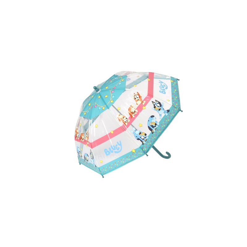 Ett alldeles eget Blueyparaply för regniga dagar. Med roliga mönster, illustrationer och glada färger piggar detta barnparaply upp vilken regnig dag som helst.