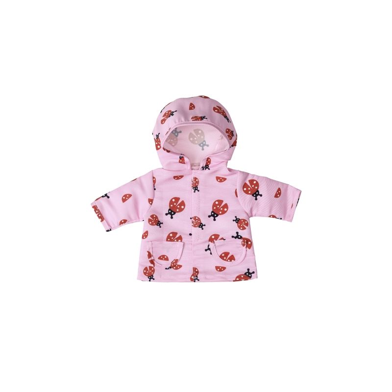 Regnjacka i glada, lekfulla färger och passar dockor i storlek 36-40 cm. Dockkläderna är lätta att ta av och på för ombyten och nya äventyr.