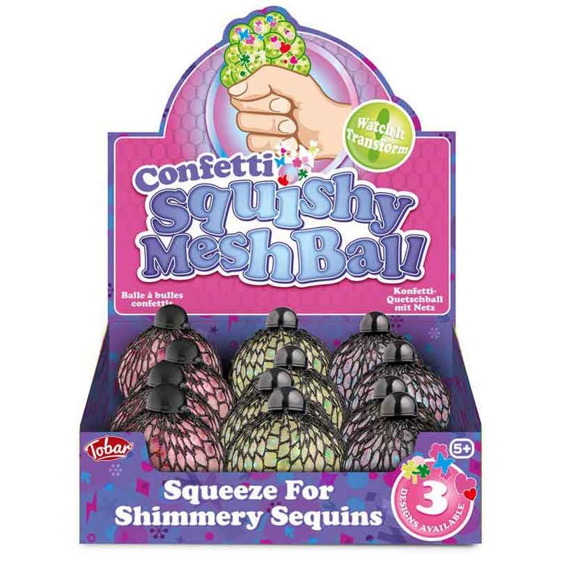 Klämboll Glitter Confetti Squishy är rolig boll som är rolig att klämma på och samtidigt avkopplande. När man kramar om bollen buktar den ut genom nätets hål. Färgen man får blir en rolig överraskning. Diameter: 7 cm. Antal: 1 st.