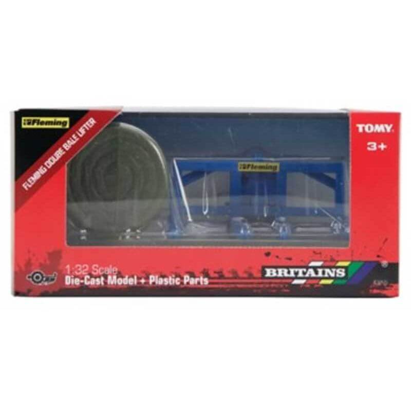 Britains Fleming Dubbel Ballyft, ett perfekt redskap för den lilla bondens leksaksbondgård. Ballyften passar till Britains traktorer i skala 1:32. Här kan barnen leka att de utfodrar sina djur på bondgården. Skala: 1:32. Bredd: 8 cm.