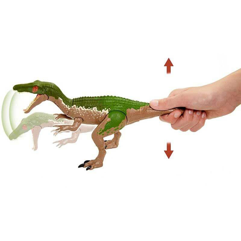 - Då man trycker ned eller upp svansen, ger den ifrån sig tre olika dinosaurievrål/ljud.