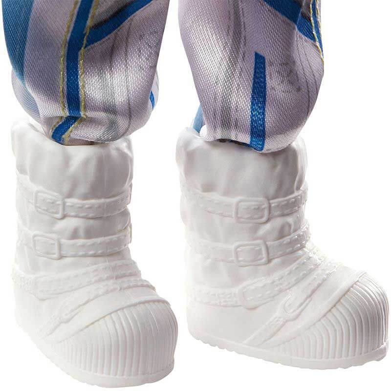 Barbie har på sig sin tuffa rymddräkt som är vit med blå detaljer, självklart kan hennes handskar, skor och hjälp plockas av enkelt när hon är färdig med sina rymduppdrag för dagen.