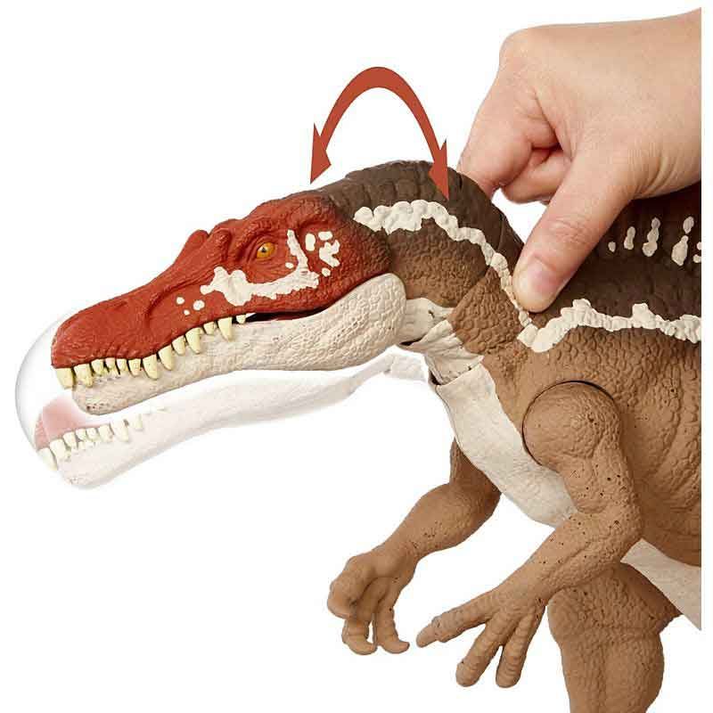 Gör dig redo för mer spänning och äventyr med Jurassic World! Denna Extreme Chompin' Spinosaurus dinosauriefigur fångar den ultimata actionstriden!