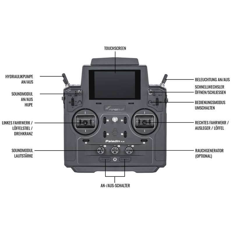 - Avancerad handkontroll med 18 kanaler, digital display, pekskärm och man kan avläsa flera olika saker på handkontrollen.