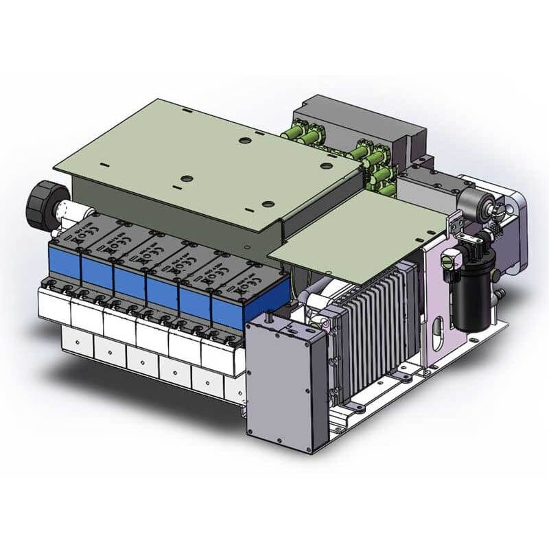- Hela hydraulenheten är utrustad med högprecisionsservon som styr ventilernas flöde.