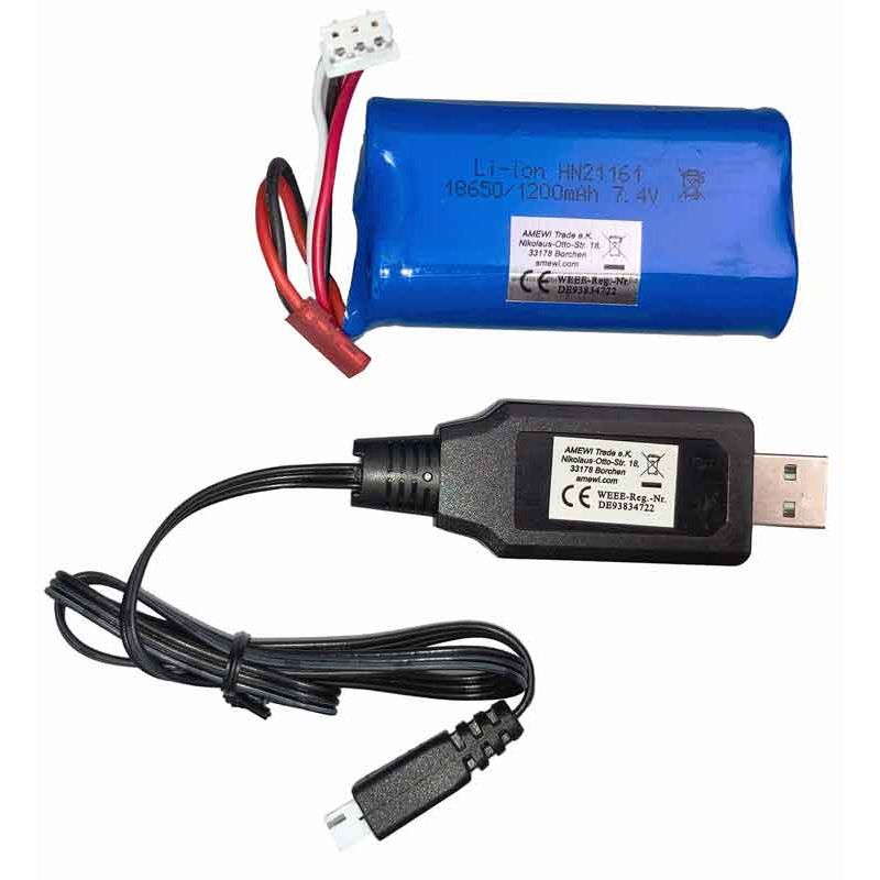- 1 st. Uppladdningsbart batteri 7,4 volt, 1200 mAh.