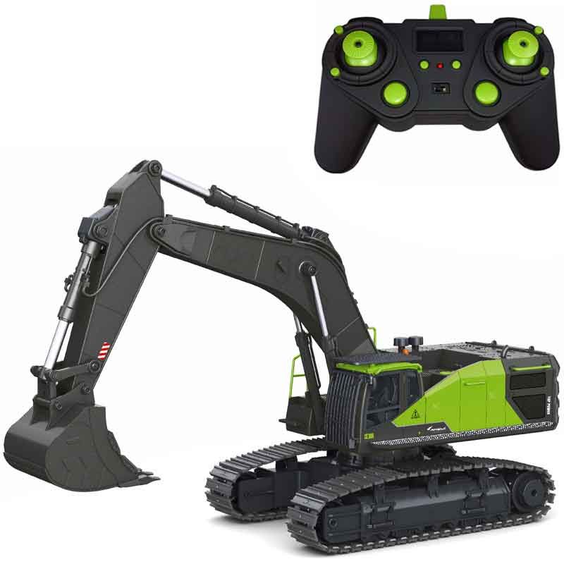 - Denna grävmaskin är starkare än de radiostyrda grävmaskinerna Liebherr från Jamara och Volvo från Play Fun.