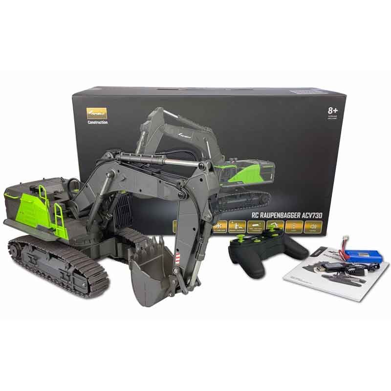 Radiostyrd Grävmaskin ACV730 V3 är verkligen en häftig grävmaskin med metallskopa och fantastiska detaljer. Den har en starka motorer till både grävarmen och larverna. En väldigt gedigen grävmaskin av hög kvalitet från välkända Amewi. Ny uppdaterad elektronik och med växlar i metall. Skala: 1:14. Längd med utfälld grävarm: 67 cm.