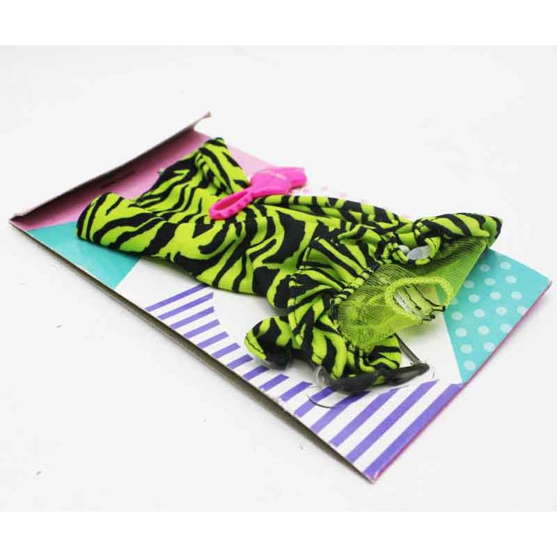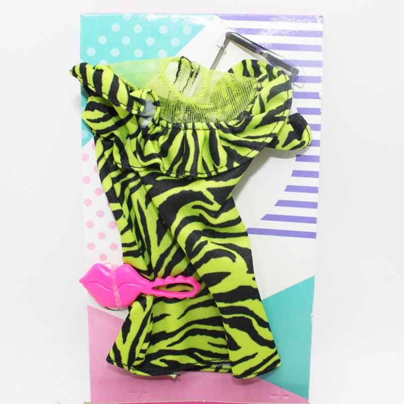 Nu kan Barbie klä sig i en snygg limegrön dress med svarta detaljer. Till detta ingår ett par snygga glasögon och en rosa handväska som ser ut som en mun.