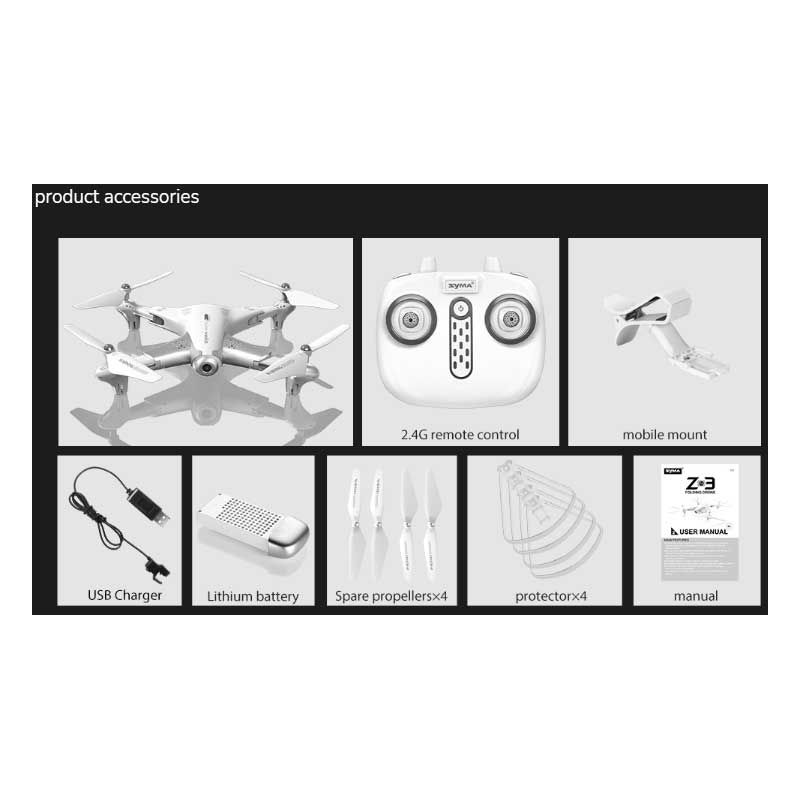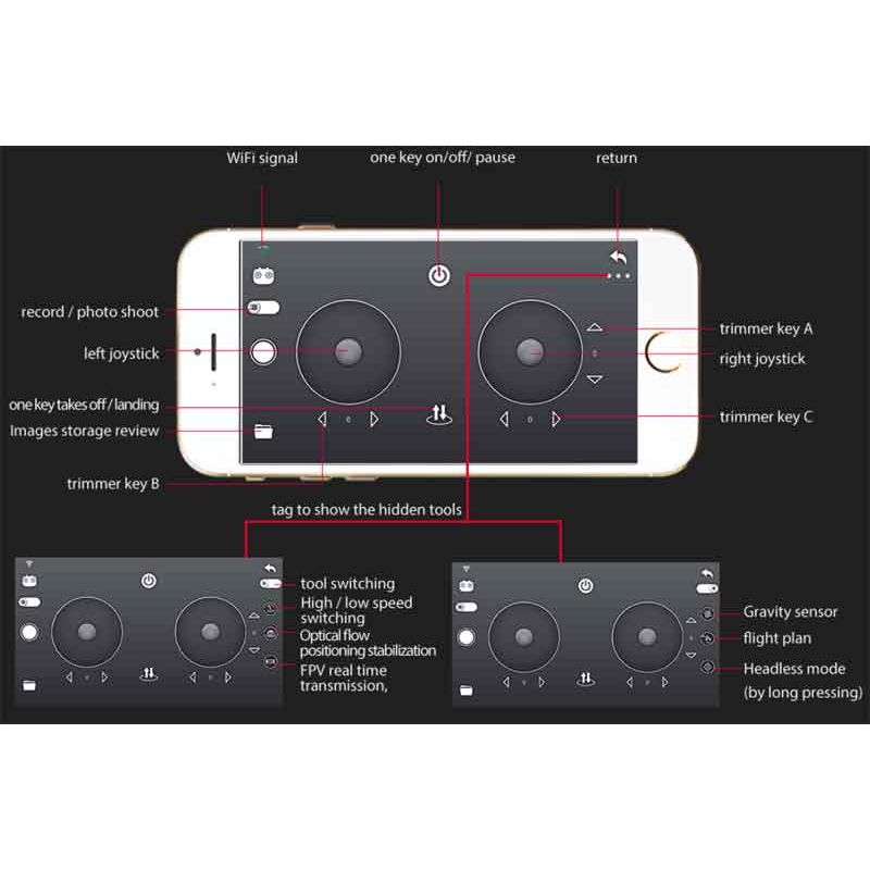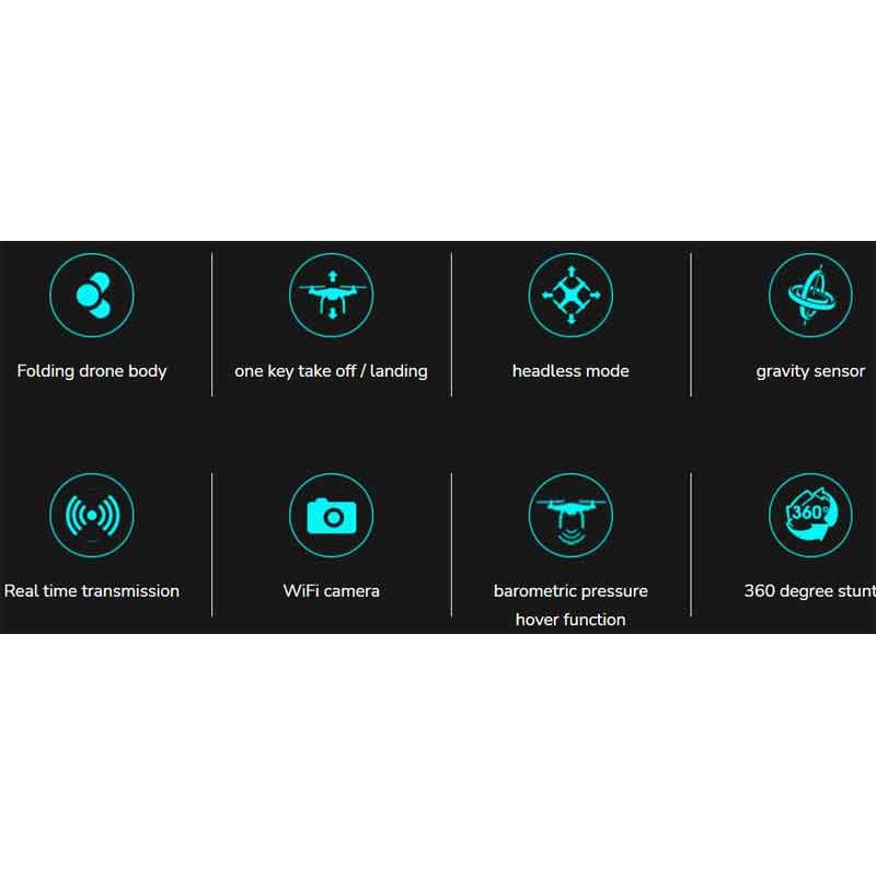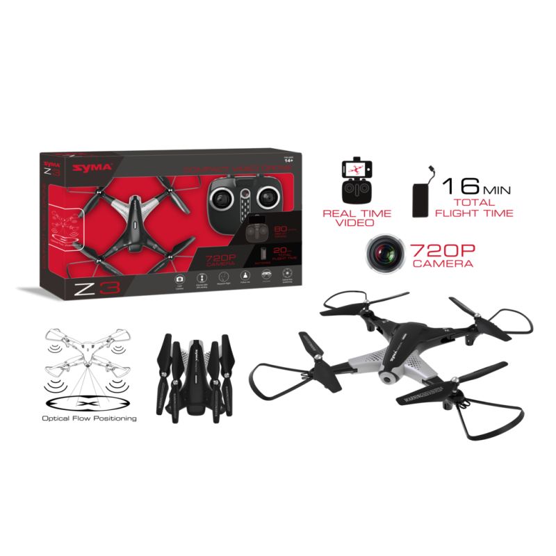 Syma Drönare Z3 hopfällbar med WiFi kamera och en körtid på hela 20 minuter. Den styrs med 2,4 Ghz för bästa kontroll och en störningsfrikörning. Enkelt att starta och landa, om man vill kan man använda en knapp för start och en knapp för landning.