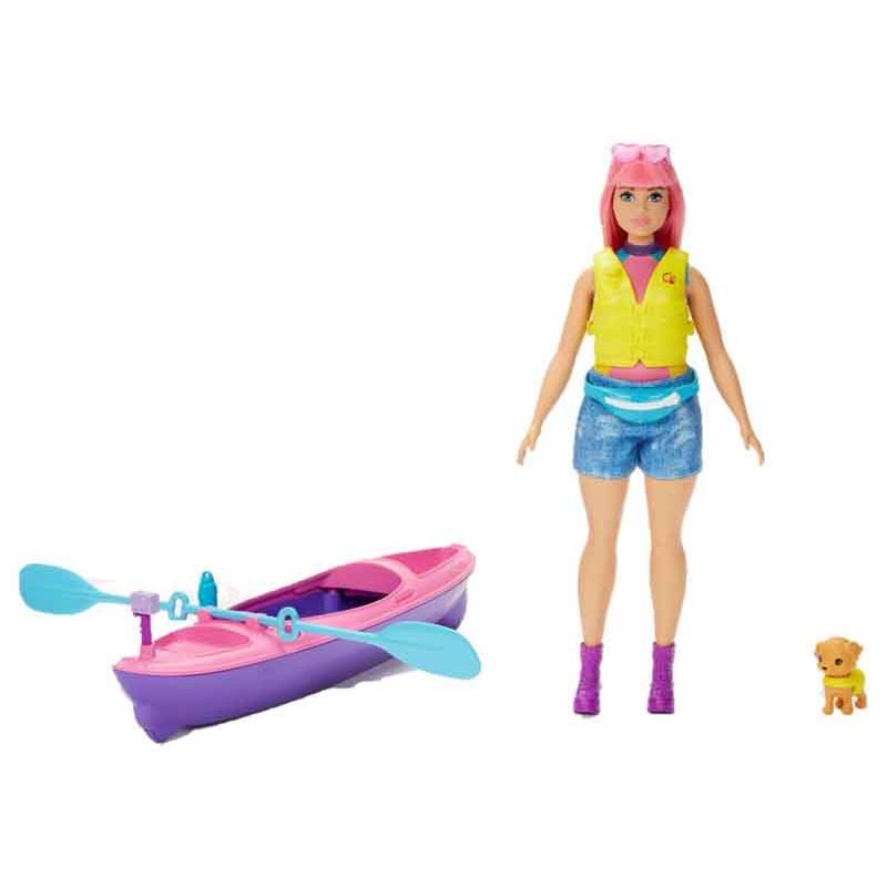 Daisy-dockan kan enkelt hålla i handtagen på paddeln, en aktivitetskamera monterad i kajakens front dokumenterar färden och en vattenflaska ingår så hon kan dricka vatten. Daisy-dockan är redo för lek hela dagen i en cool campingoutfit, midjeväska och snygga solglasögon som fulländar hennes äventyrliga stil.