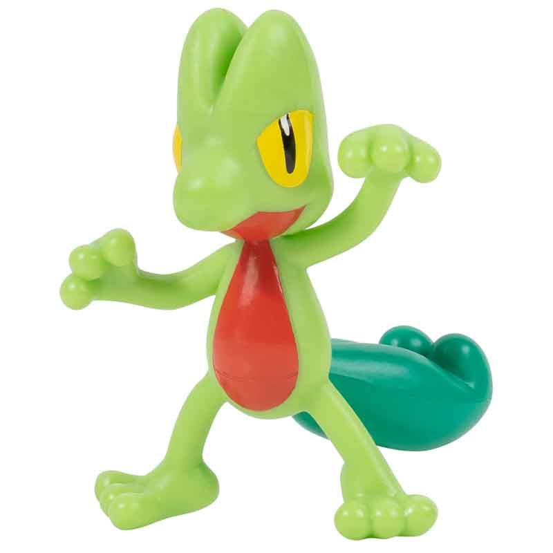 Pokemon Clip N Go Treecko och Poke Ball. Treecko har små krokar under sina fötter så den kan klättra på vertikala väggar. Treecko attackerar genom att slå sina fiender med sin tjocka svans.
