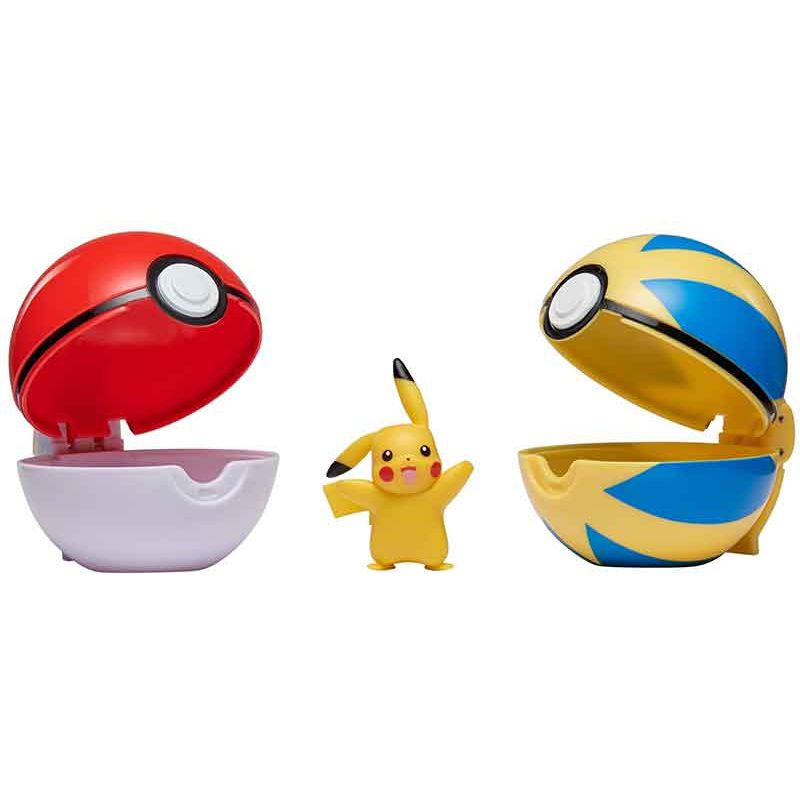 Pikachu kan förvaras i någon av de två medföljande bollarna. Bär med dig upp till 6 pokébollar i väskan. Kompatibel med andra Pokémon Clip 'N Go och 5 cm Pokemon battle figures.