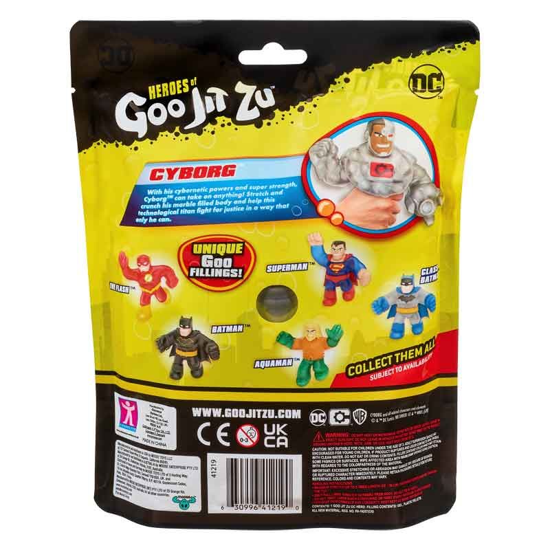Cyborg, medlem i Teen Titans från DC Comics och Heroes of Goo Jit Zu har slagit sig samman. Krama, kläm och dra denna leksaksfigur i armar och ben. Varje figur har en unik fyllning med egen konsistens och känsla. Utgått, se andra figurer, klicka här.