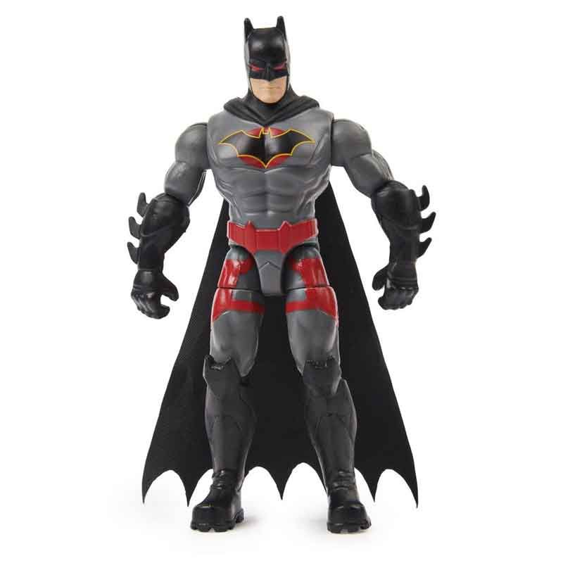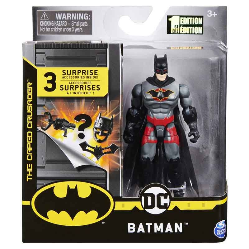 Batman Figur The Caped Crusader, här har Batman en superfin dräkt i grått, svart och med röda detaljer. Han är nu redo påbörja striden mot skurkarna med sina tre hemliga tillbehör.