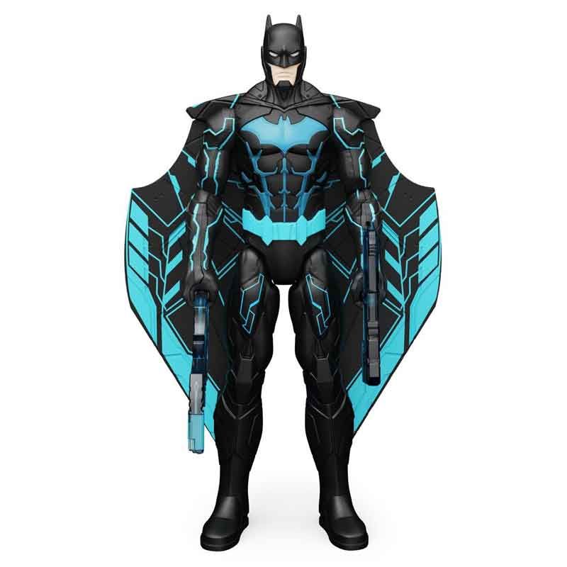 Batman Deluxe Figur Bat Tech med vingar, nu kommer Batmn i sin specialdräkt med vingar. Han har även med sig två vapen, en bumerang och en pistol. Nu kommer bovarna bli överraskade då Batman kommer farandes i mörkret på Gotahms Gator.