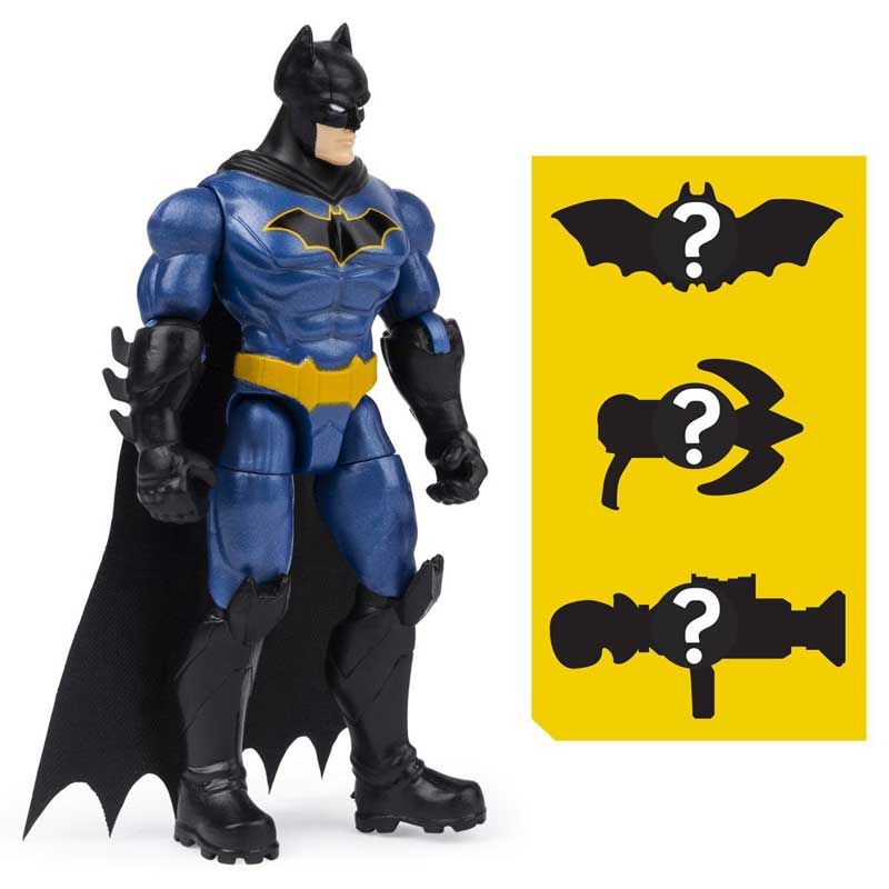 Batman Figur med blå och svart dräkt. Här får barnen med tre hemliga tillbehör. Dessa tre överraskningar kan Batman använda i kampen mot bovarna. Dags att ge sig ut på Gothams gator och stoppa skurkarna en gång för alla.