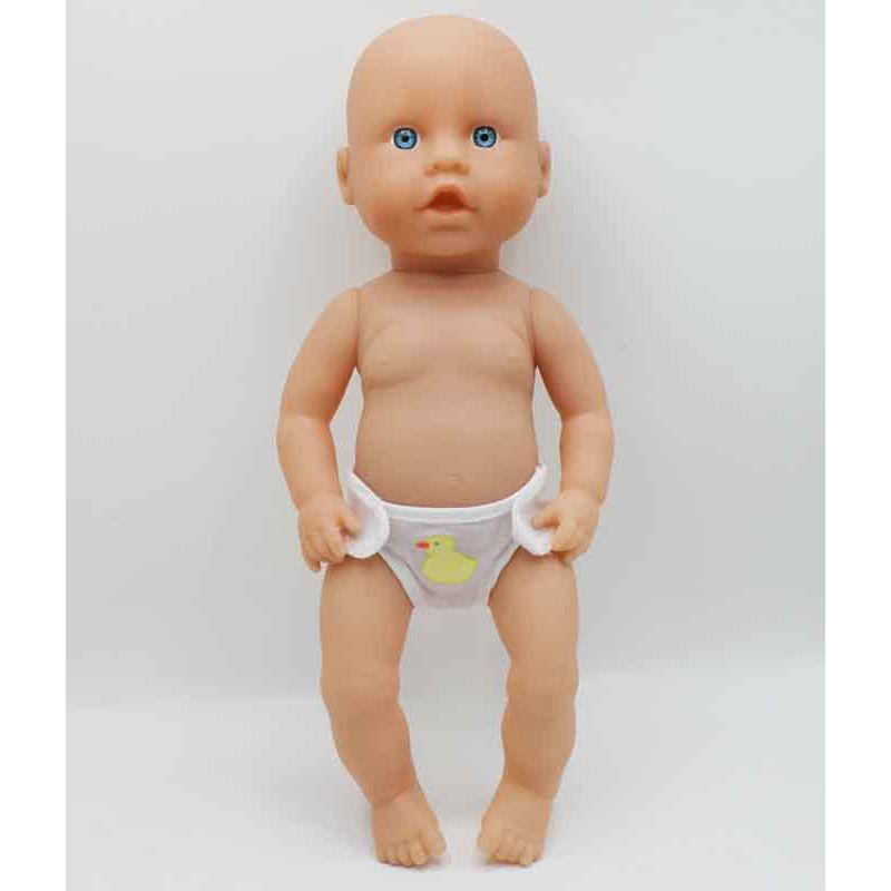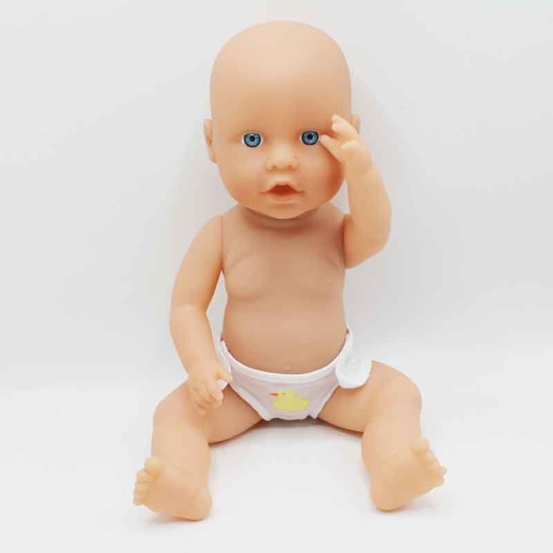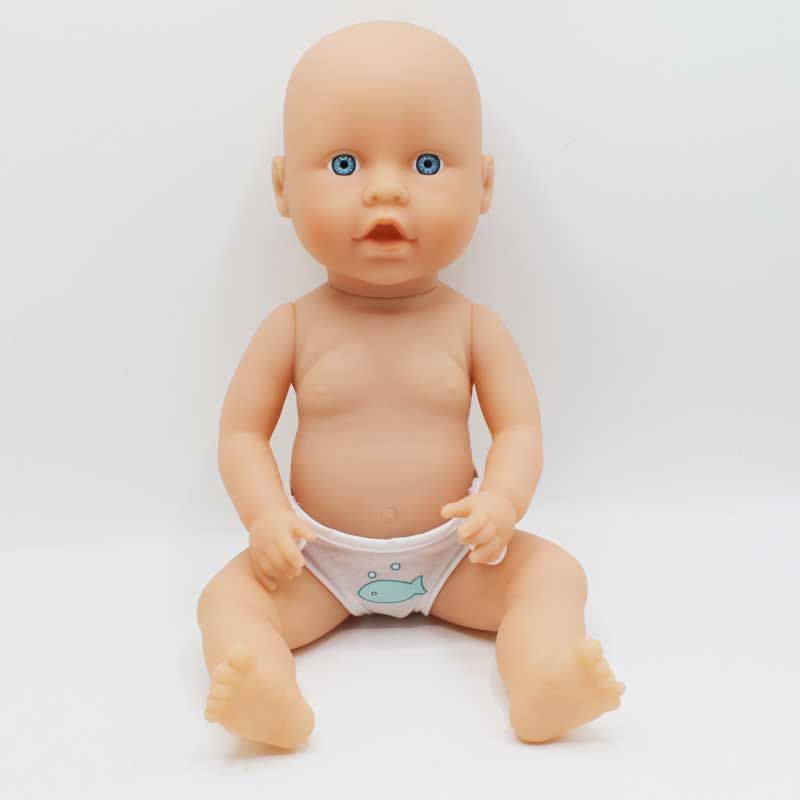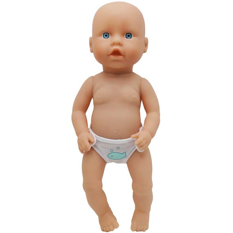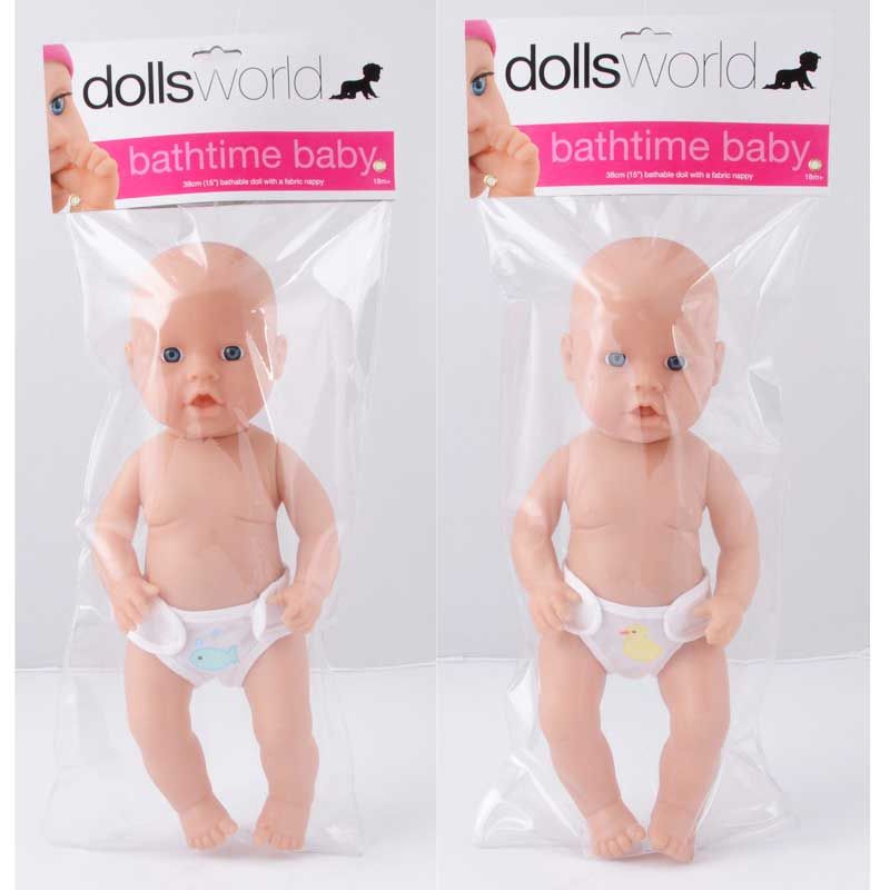 Baddocka med badblöja Dolls World, en gullig docka som vill vara med och bada. Barnen kan tvätta dockan så hon blir ren och fin. Barnen kan även bada tillsammans med dockan för en roligare badstund. Ett fint och roligt set för barnen att leka med. Höjd: 38 cm.