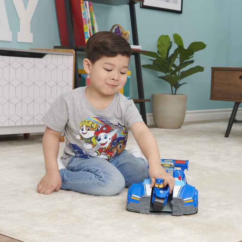 Gå ihop med Chase och hans PAW Patrol: The Movie Transforming City Cruiser och ge dig ut på action-fyllda räddningsuppdrag.