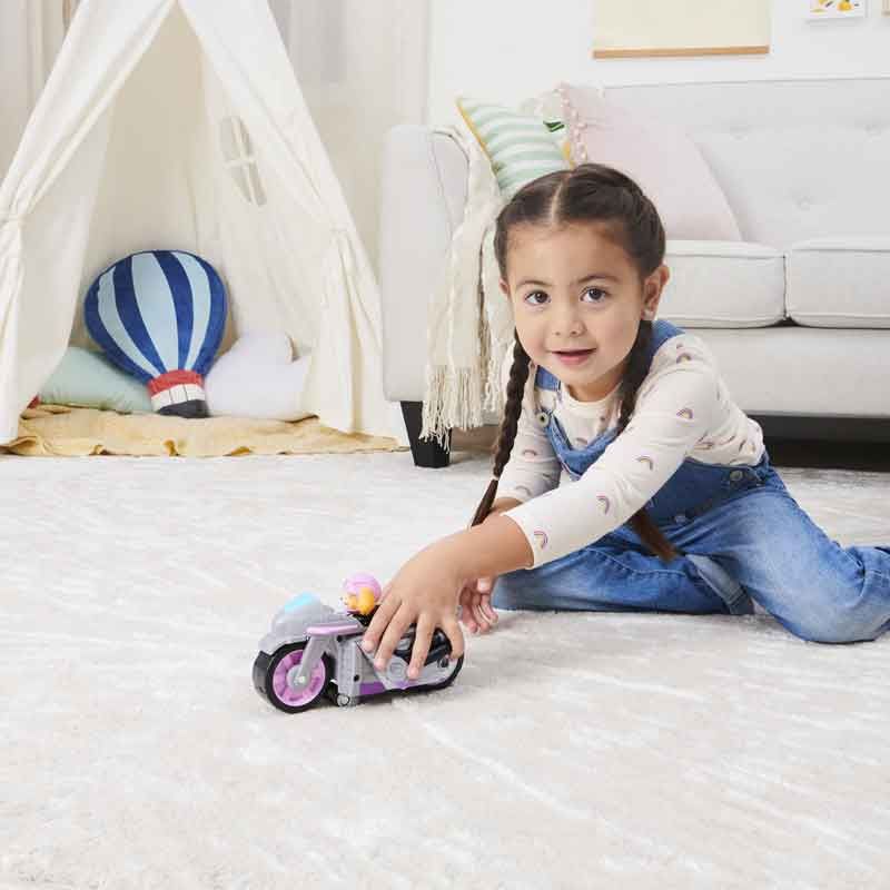 Moto Pups Deluxe-fordonen gör motorcyklarna från den populära showen levande. Samla allihop (var och en säljs separat) och använd fantasin för att rädda dagen.