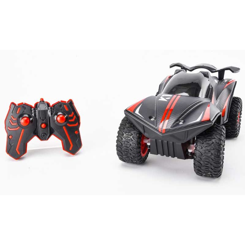 Bilen har även fyrhjulsdrift, en topp hastighet på 8 km/h och tar sig fram bra på de flesta underlag. Med bilens fräcka neogröna ljus och vitt ljus baktill, så ser det riktigt coolt ut då man kör i mörker.