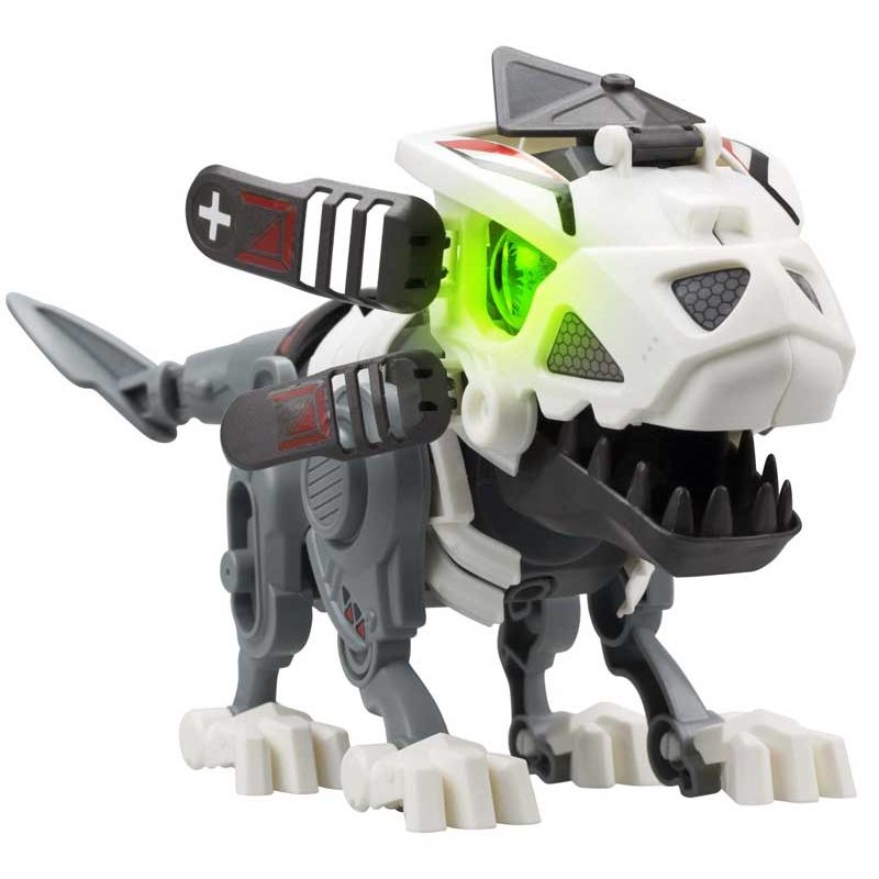 Montera djuret bit för bit och upptäck dess häftiga interaktiva funktioner. När djuret är färdigbyggt så kan de gå framåt och styras med handrörelser.