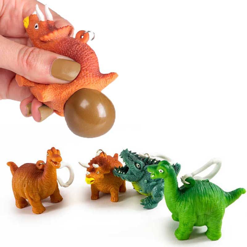 Dinosaurie Klämdjur Squeezy Poop är en rolig och annorlunda liten leksak. Kläm på djuret och se hur brunt slime kommer ut där bak eller fram. Ibland spyr dinosaurien och ibland bajsar den. Fäst det lilla djuret på dina nycklar eller väskan med hjälp av nyckelringen.