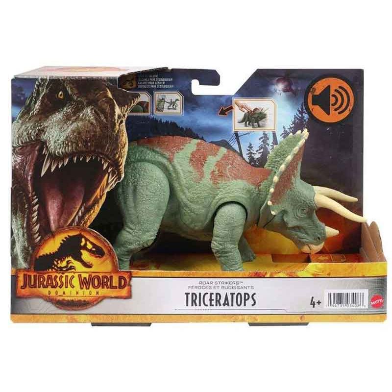Jurassic World Triceratops Roar Strikers Dinosaurie, upptäck dinosauriernas värld med den här otroligt häftiga leksaksdinosaurien i form av en Triceratops.