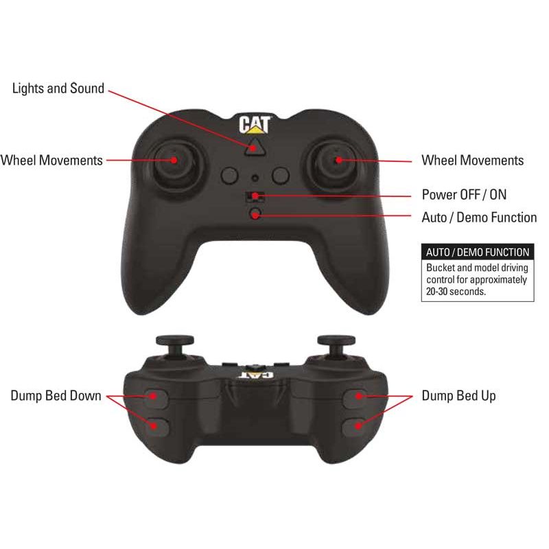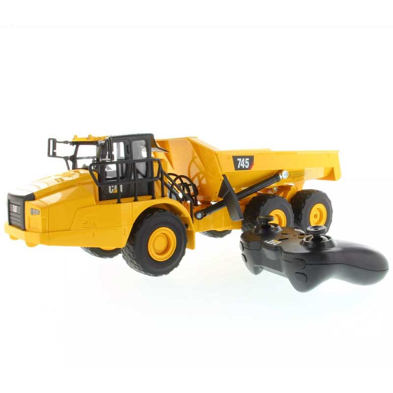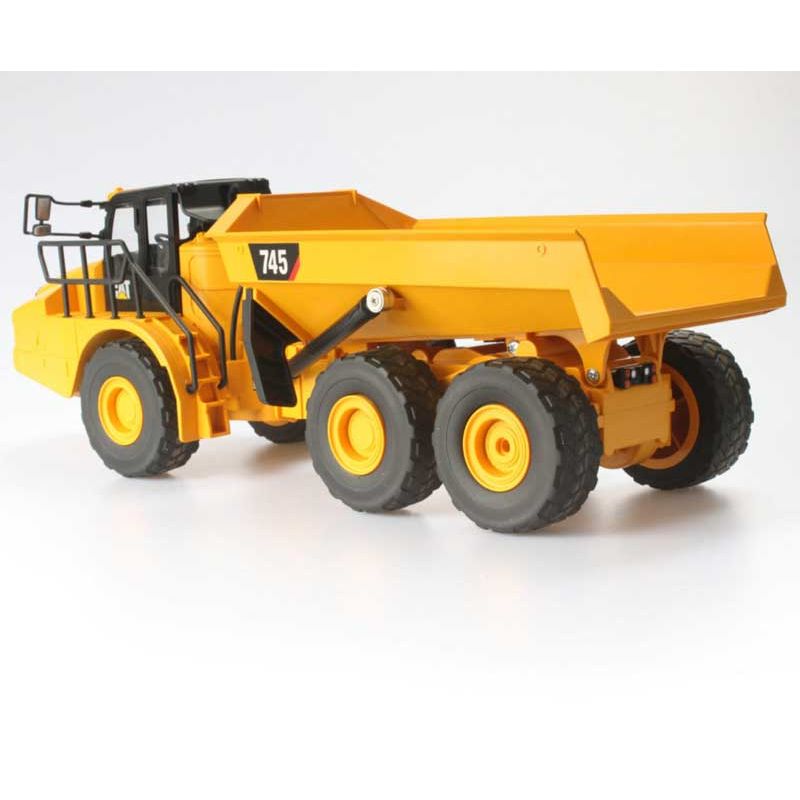 Radiostyrd CAT 745 Dumper i skala 1:24, en helt fantastiskt fin dumper som har proportionell, steglös gas. Vilket innebär att man kan själv bestämma om man vill smyga framåt, köra sakta eller köra fortare.