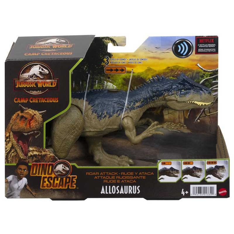 Allosaurus Med Ljud Roar Attack Jurassic World, en jättehäftig leksaksdinosaurie som föreställer en köttätande Allosaurus med fräcka ljudeffekter. Dinosaurien har rörliga leder, roliga ljudfunktioner och fina detaljer för en riktigt rolig lekstund. Längd: 34 cm.