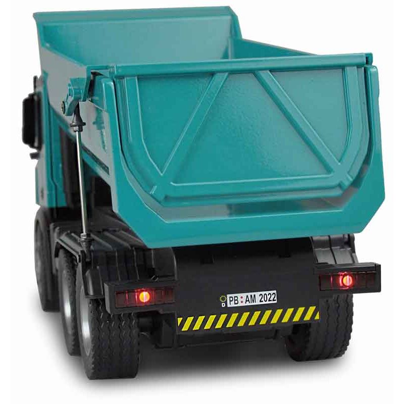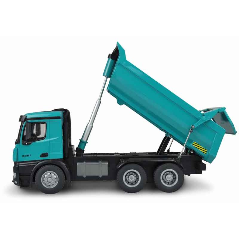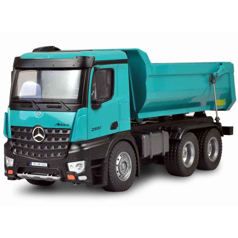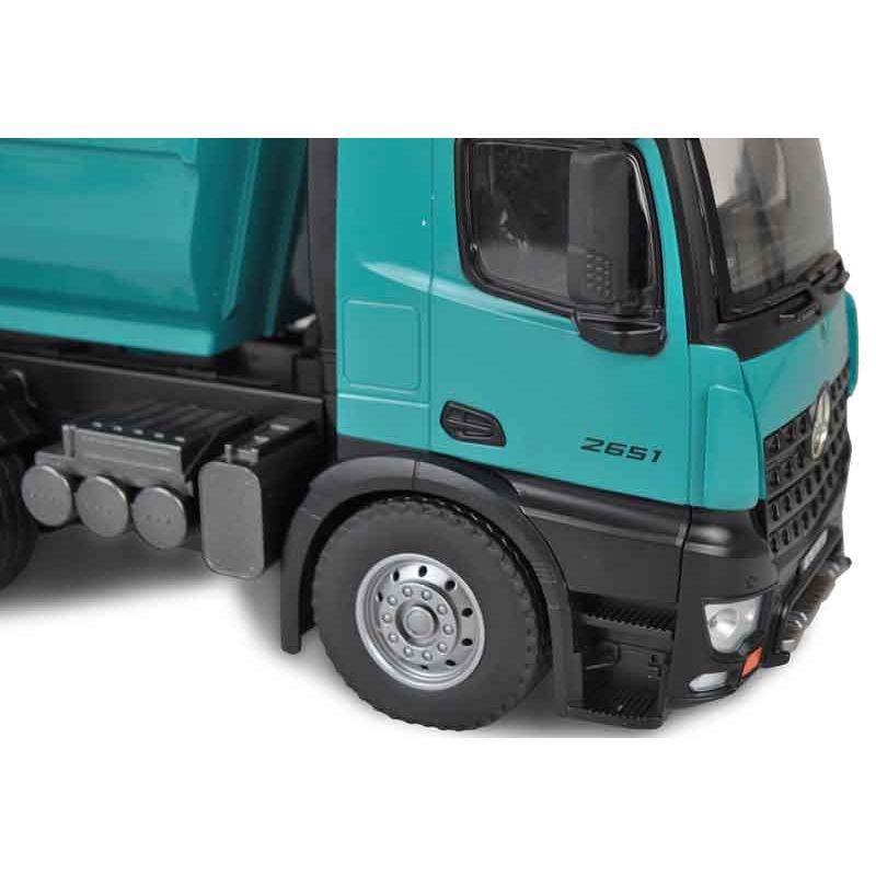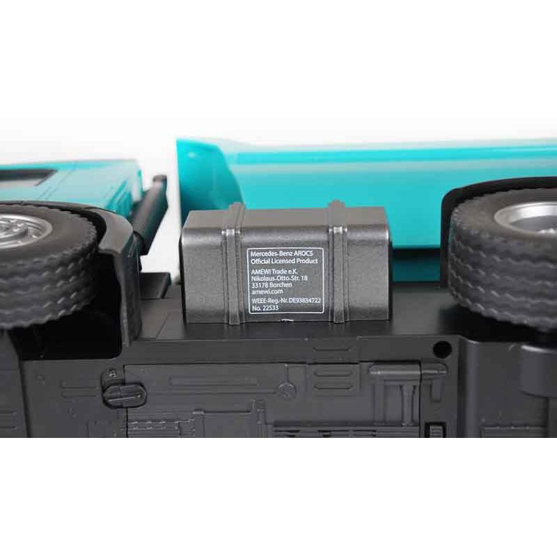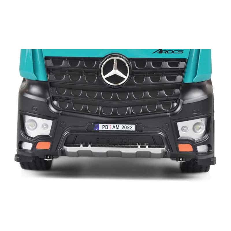 Radiostyrd PRO Lastbil Mercedes Arocs i en snygg Petrol färg med väldigt fina detaljer. Detta är en uppdaterad och modifierad version av Amewi:s radiostyrda lastbil. Den har en förfinad styrning, mjukare gummidäck för bättre fäste och det ingår även 2 st. uppladdningsbara batterier. Absolut högsta kvalitet som vanligt från Amewi. Tillverkad i metall. Skala: 1:14. Längd: 45 cm.