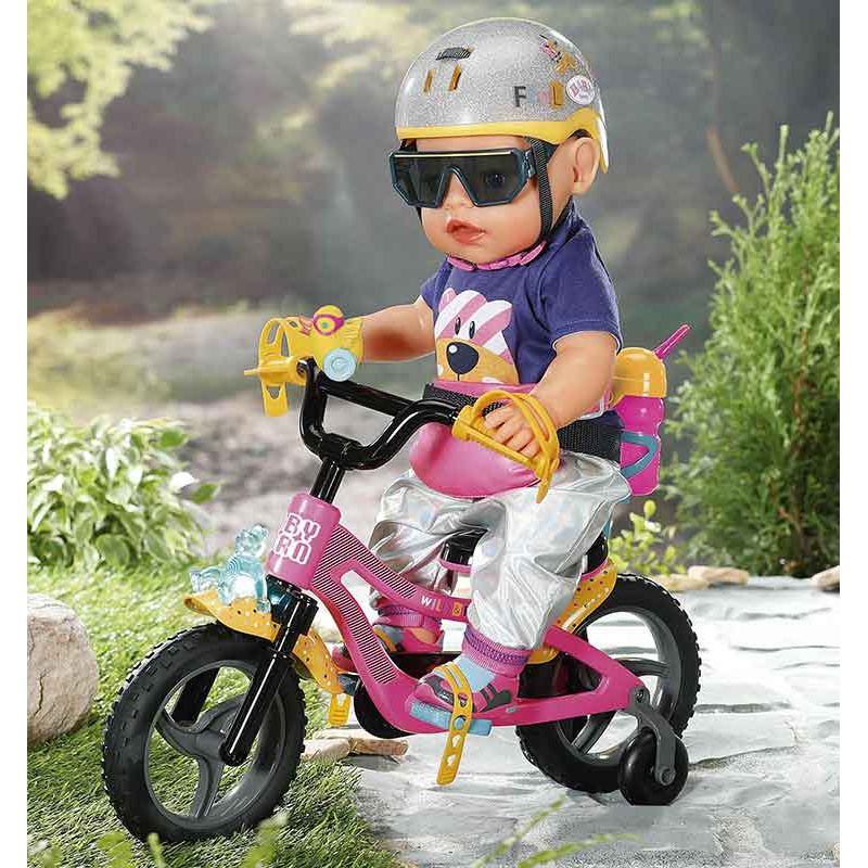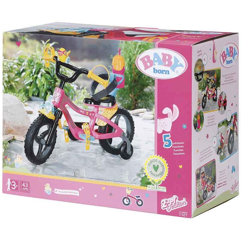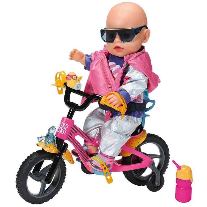 Baby Born Play & Fun Bike är en superfin och rolig mintgrön cykel till barnens dockor! Cykeln har stödhjul, handtag med toffsar, en ringklocka i form av en söt fågel, cykelkorg, säte med säkerhetsbälte och handtag baktill så man kan putta på cykeln. Hur kul som helst för barnen att köra runt sin docka i, den är ju så häftig! Längd: 37,5 cm.