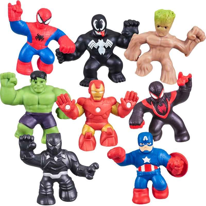 Det finns 10 Super Stretchy Mini figurer att samla. Dessa fantastiska leksaksfigurer är super hållbara. Upptäck ett nytt sätt att spela och rädda dagen med dessa coola samlarobjekt Mini Marvel Heroes of Goo Jit Zu!