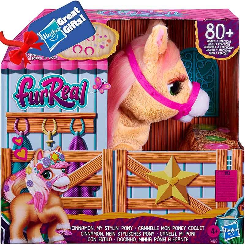 Den stora furReal-familjen växer sig hela tiden större, så att alla barn kan hitta en ny lurvig vän, liten eller stor. Cinnamon, My Stylin’ Pony är ett vackert 35 cm högt plyschhusdjur som förverkligar barnens dröm om att ha en alldeles egen ponny.