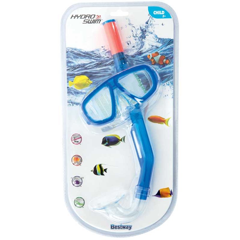 Snorkelset Bestway till barnen som gör att de kan utforska livet under vattenytan. Här kan de med cyklop och snorkel få en rolig upplevelse då de badar i sjön, havet eller i poolen. Rek. ålder från. 3-7 år. Utgått, se andra cyklop klicka här.