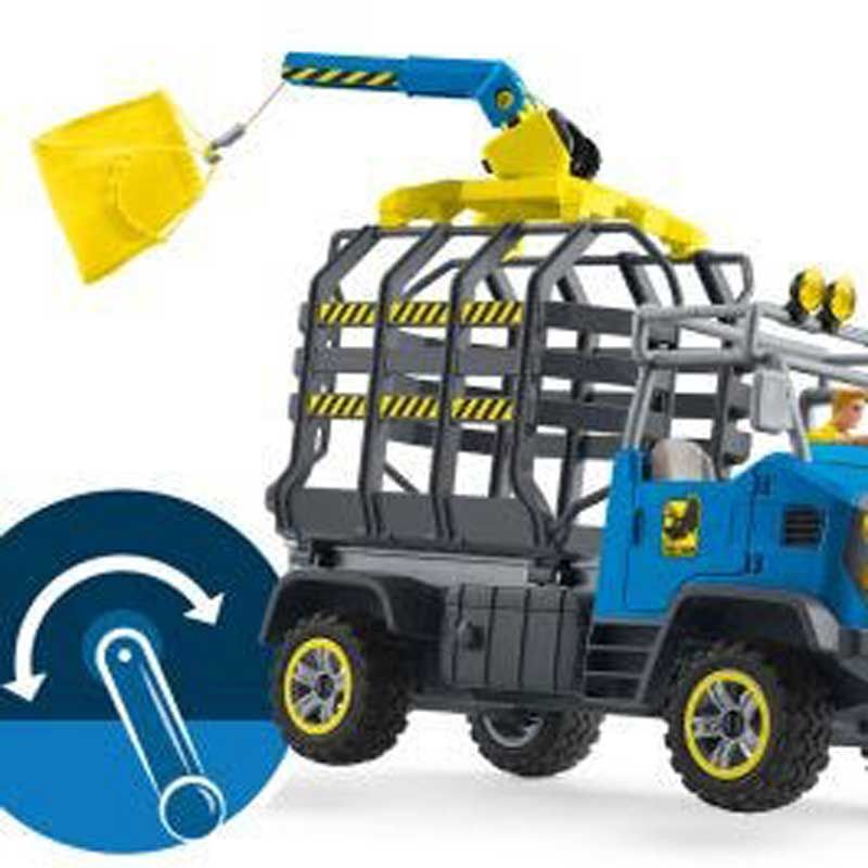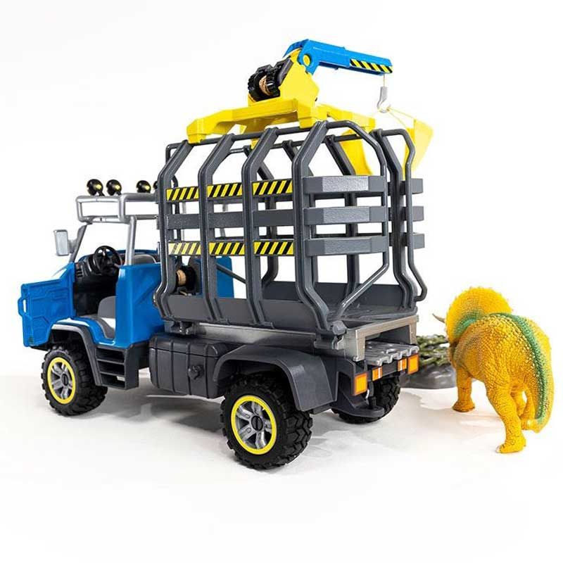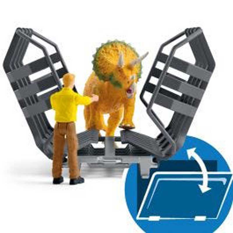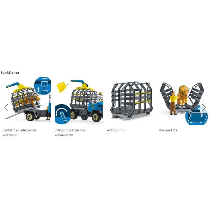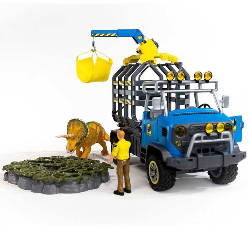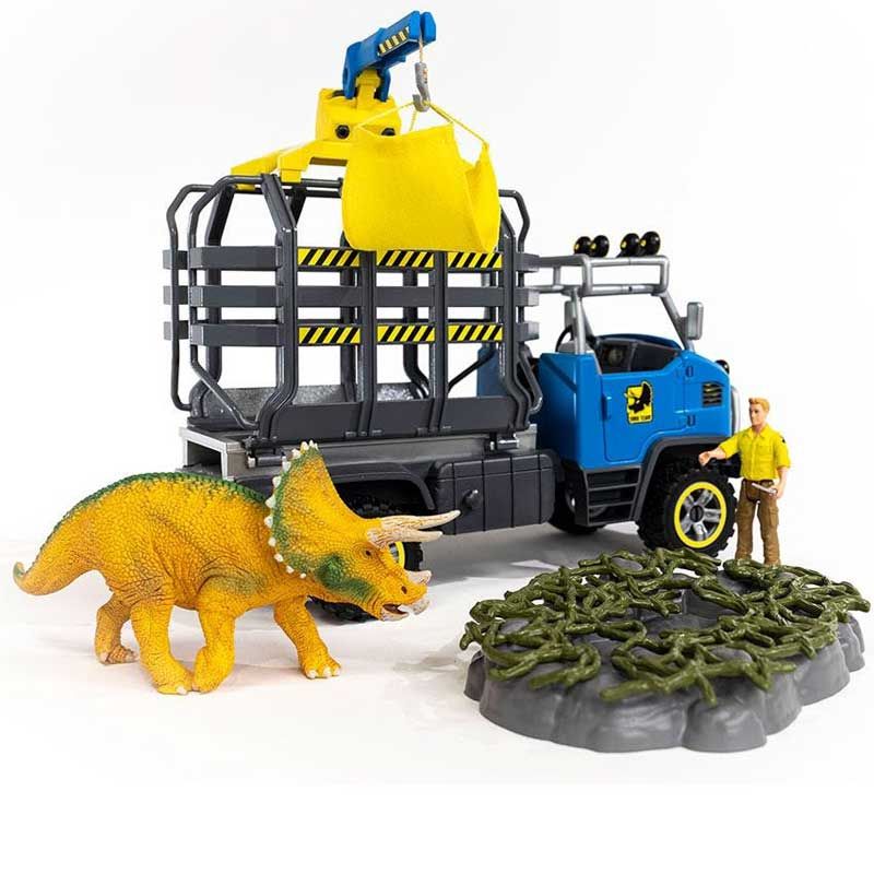 Schleich Dinosaurie transportbil 42565. Åh, nej! När en styracosaurus fångas i ett nät kan lastbilsföraren från schleich® dinosaurielastbilsdelegation skära loss honom från repen på ett ögonblick.