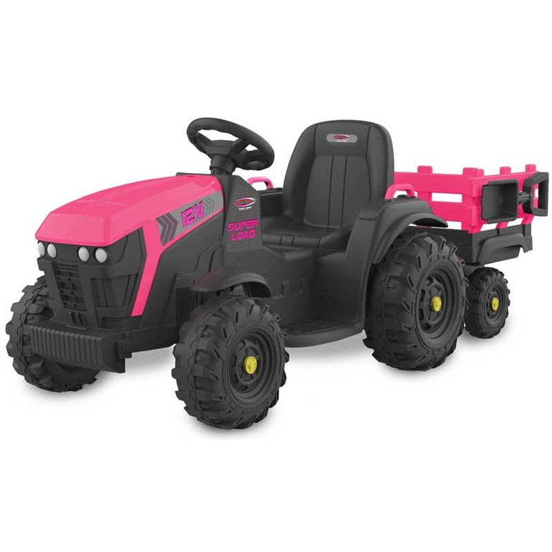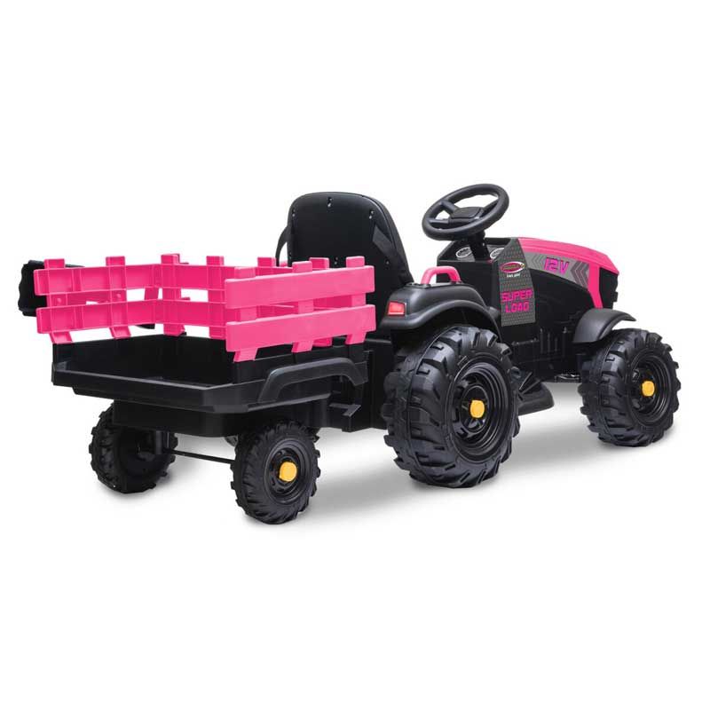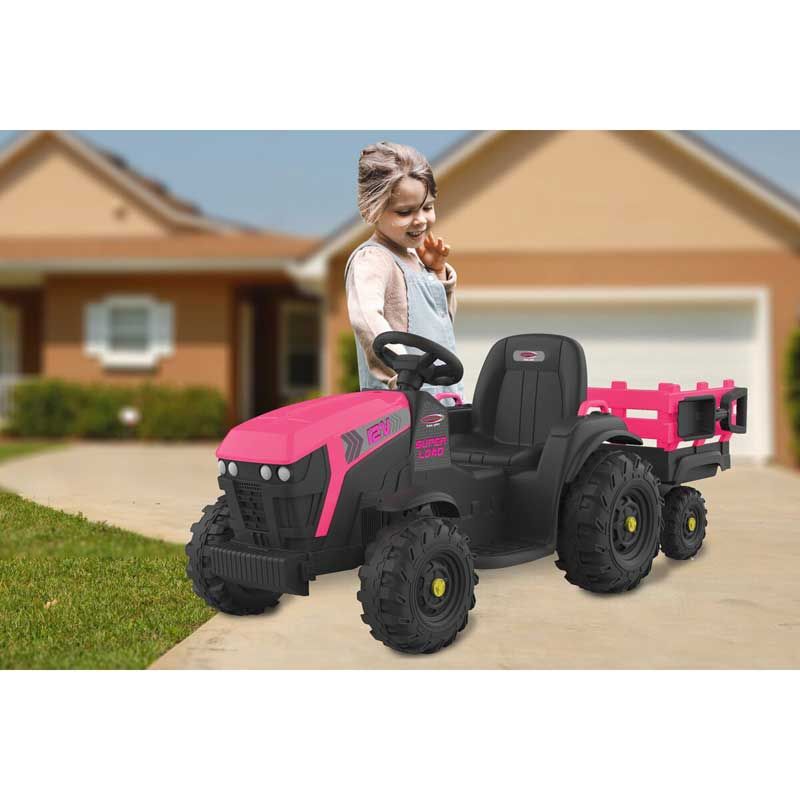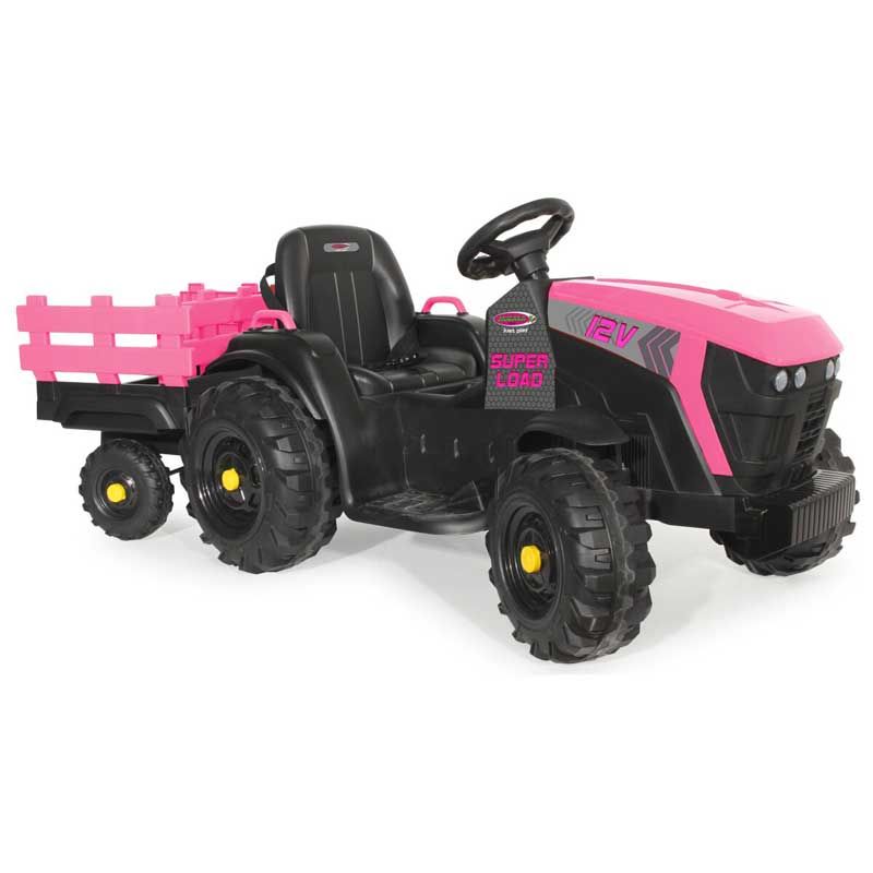 En superrolig eltraktor till barnen. En eltraktor Rosa Super Load med vagn för barnens utelek. En eltraktor som har två drivmotorer, en motor till varje bakhjul. Detta gör att den tar sig fram väldigt bra. Färg: Rosa och svart.