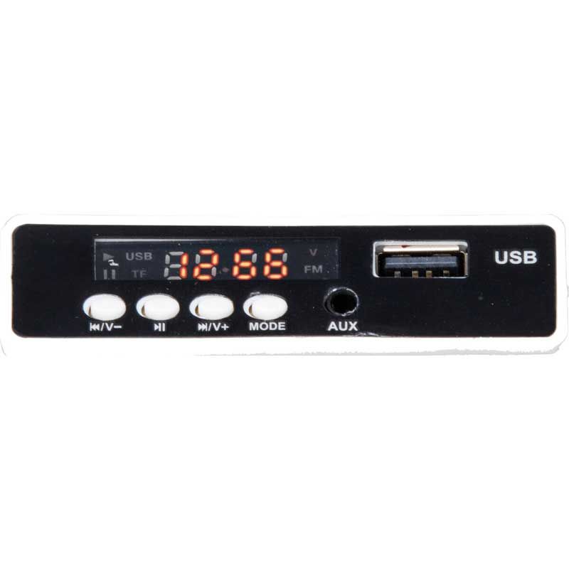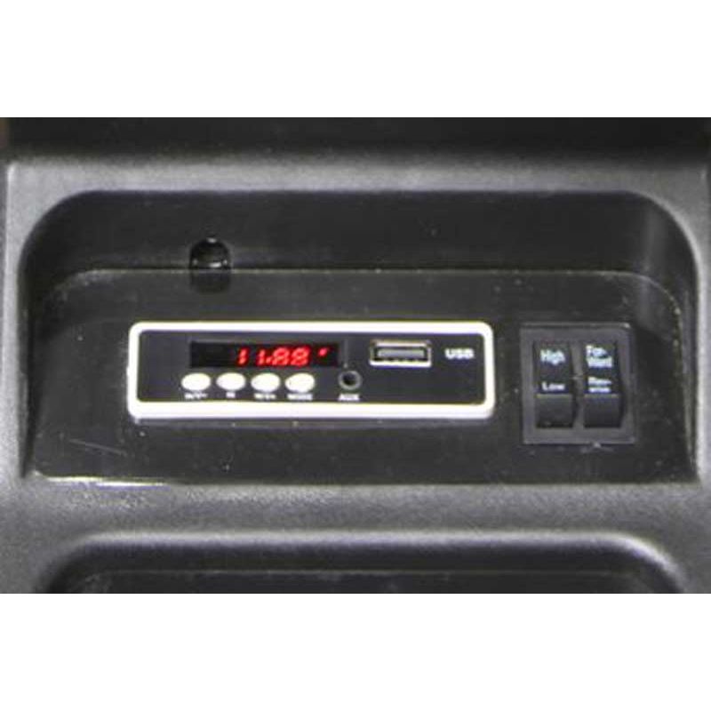 - Ljud, FM-Radio, USB - Anslutning, Audio AUX - Anslutning. Volym kan justeras.