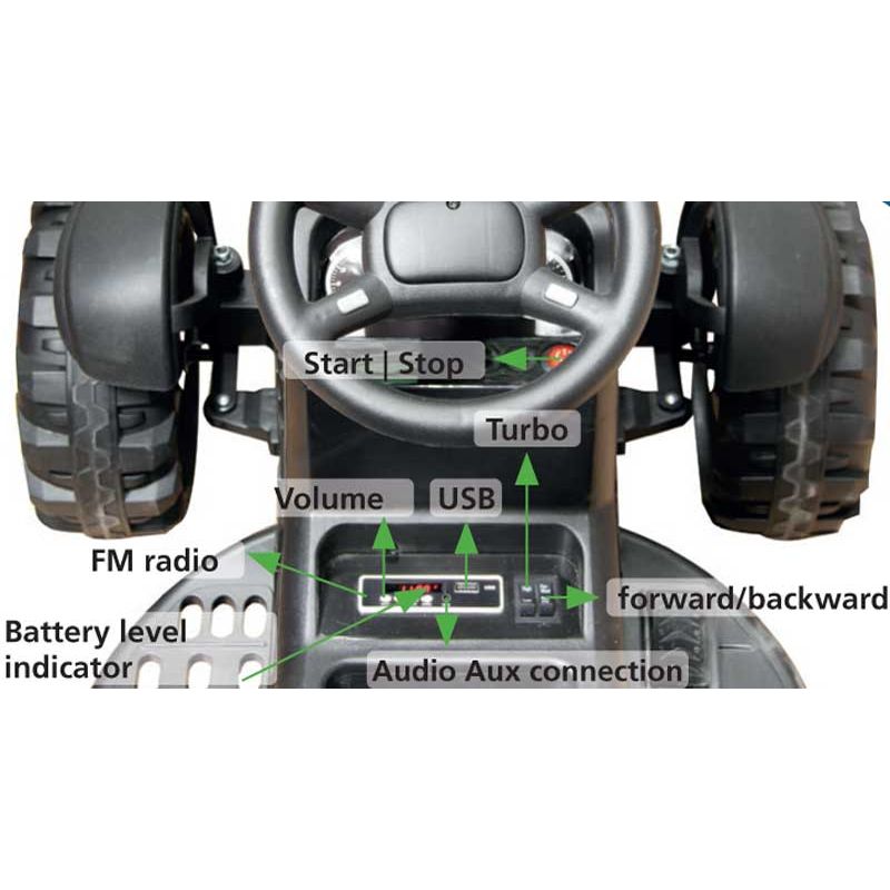 - Batteriet sitter under motorhuven och är lätt att skruva/koppla loss. En härlig eltraktor för barnens utomhuslek!
