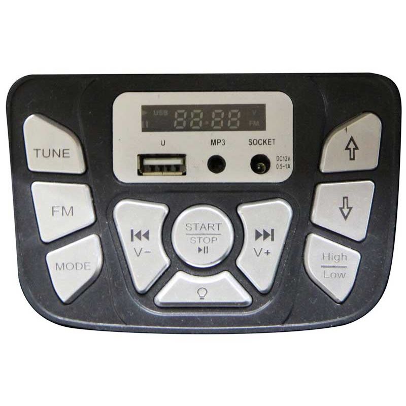 - Ljud, FM-Radio, Audio AUX port, USB port. Volym kan justeras.