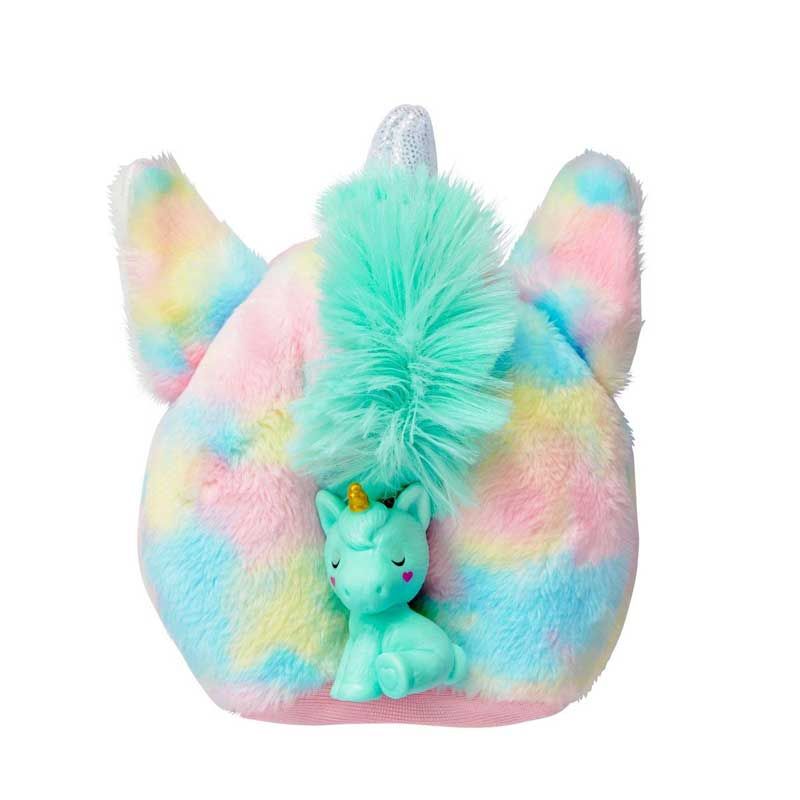 Open the surprise bags to find shimmery clothes, accessories, a sponge-comb and a mini pet unicorn.