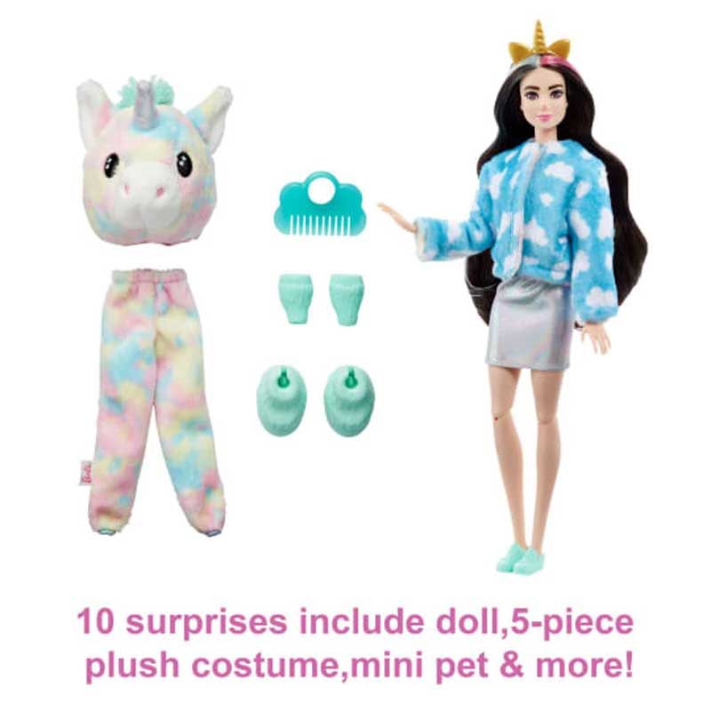 Barbie Cutie Reveal Unicorn Plush Costume Dreamland Fantasy Series med överraskningar. Inklusive en justerbar Barbie®-docka!