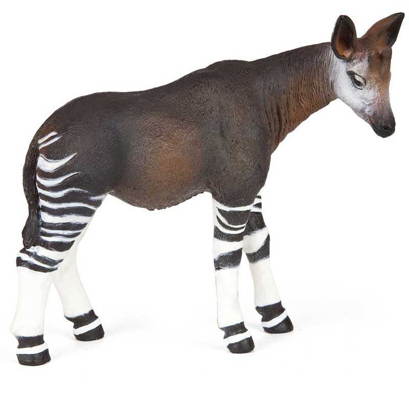 Papo Okapi Leksaksdjur, den här fina leksaksfdjuret föreställer en härlig Okapi. En Okapi är ett hovdjur som tillhör familjen giraffdjur. Den lever bara i Kongo-Kinshasas tropiska regnskogar. Den är handmålad med fokus på detaljrikedom precis som de andra figurerna från Papo. Längd: 13 cm. Utgått, se andra leksaksdjur, klicka här.