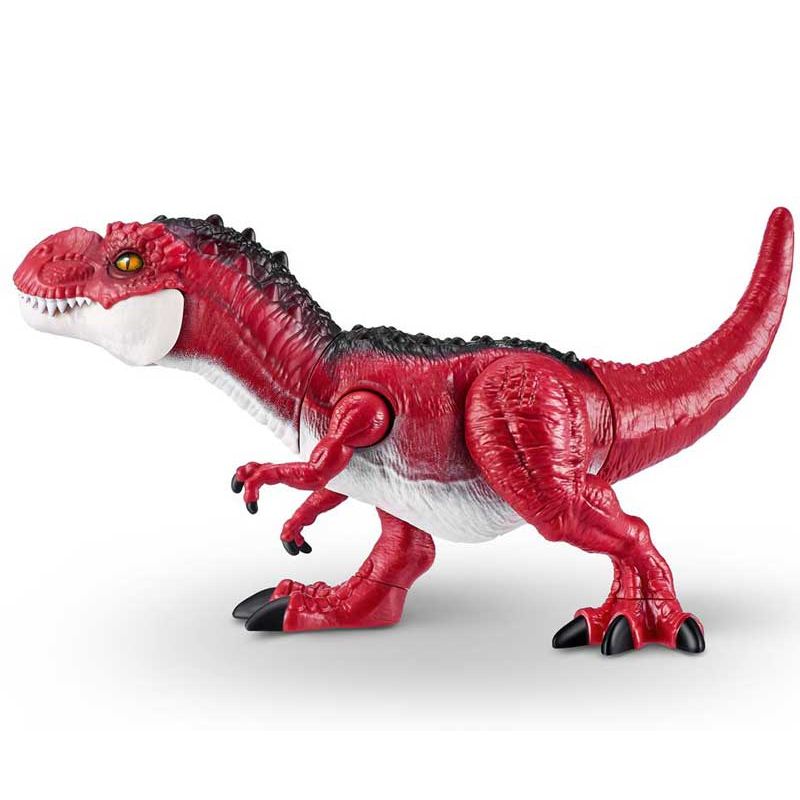 Robo Alive T-Rex Action Dinosaurie Interaktiv leksaksdinosaurie. Se upp T-Rex är på gång och är på jakt efter ett byte. Tryck ned och håll svansen nedtryckt och se hur dess armar rör sig och kanske griper ett byte och se käken öppnas och den vråååååålarrr! Längd: 25 cm. Utgått, se andra interaktiva leksaker, klicka här.