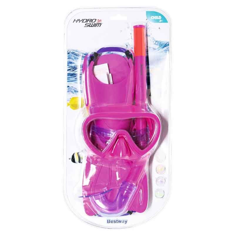 Snorkelset Rosa för barn, nu kan barnen utforska livet under vattenytan. Här kan de med simfötter, cyklop och snorkel få en rolig upplevelse då de badar i sjön, havet eller i poolen. Rek. ålder från 7-14 år.