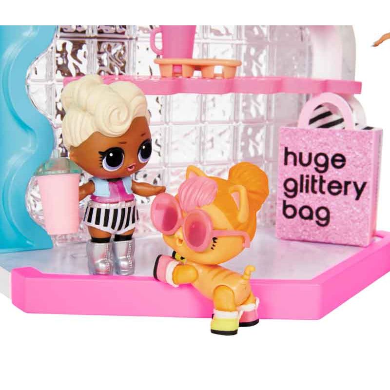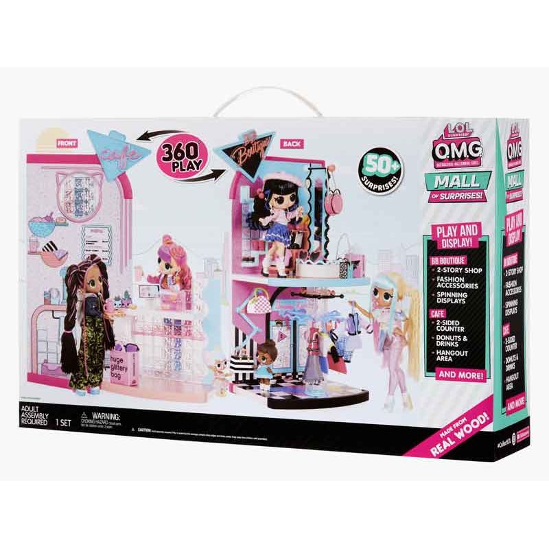 L.O.L. Surprise OMG Mall of Surprises. Välkommen till L.O.L. Surprise! OMG Mall of Surprises! Leksetet kan kopplas till L.O.L. Surprise! OMG House of Surprises dockhuset, så att alla dina L.O.L. Surprise! fashion- och samlardockor får ännu flera möjligheter att breda ut sig. Över 50 st. överraskningar. Det ingår inga dockor i paketet.