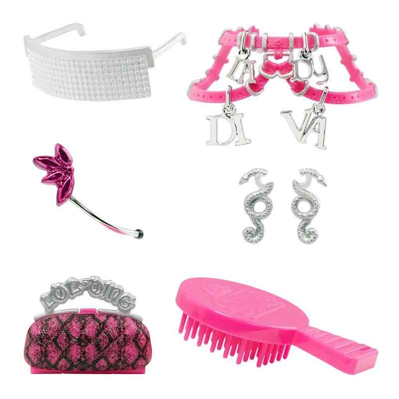 - Häftigt outfit, skor, tillbehör, dockstativ m.m.
